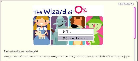 | 在下列的 Flash 畫面上,先按滑鼠右鍵,選擇出現在最後一項的「關於 Flash Player」: | |