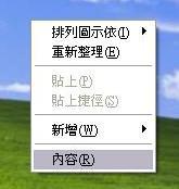 在桌面上按滑鼠右鍵,選擇「內容」。